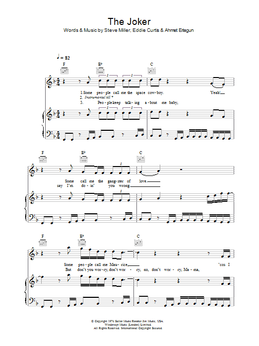 Download or print Steve Miller Band The Joker sheet music, chords and digital score arranged for Easy Bass Tab. This Rock score includes 1 page(s).