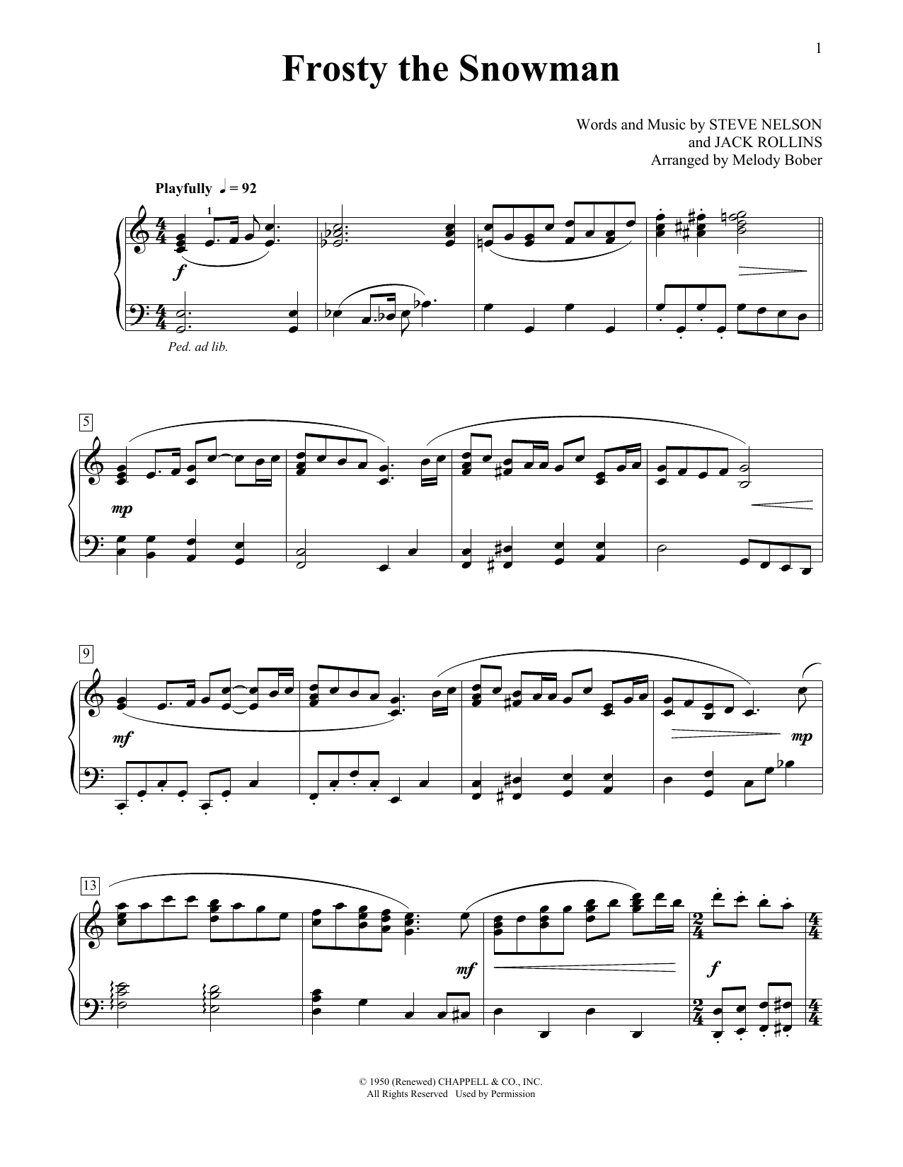 Download or print Steve Nelson Frosty The Snowman sheet music, chords and digital score arranged for Educational Piano. This Christmas score includes 2 page(s).