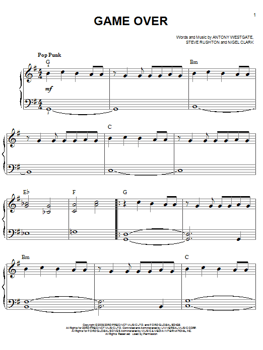 Quick facts Game Over (from Hannah Montana: The Movie) about digital sheet music