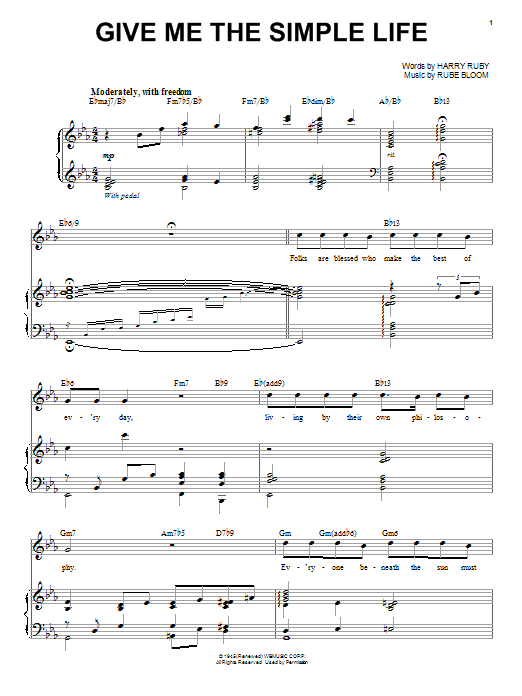 Download or print Steve Tyrell Give Me The Simple Life sheet music, chords and digital score arranged for Piano & Vocal. This Jazz score includes 4 page(s).