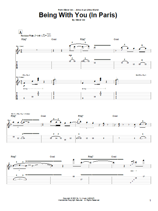 Download or print Steve Vai Being With You (In Paris) sheet music, chords and digital score arranged for Guitar Tab. This Metal score includes 10 page(s).