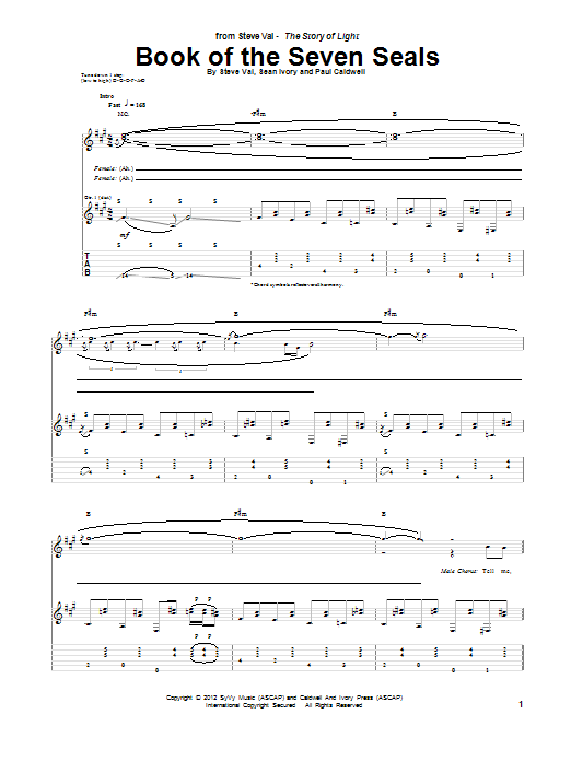 Download or print Steve Vai Book Of The Seven Seals sheet music, chords and digital score arranged for Guitar Tab. This Pop score includes 15 page(s).