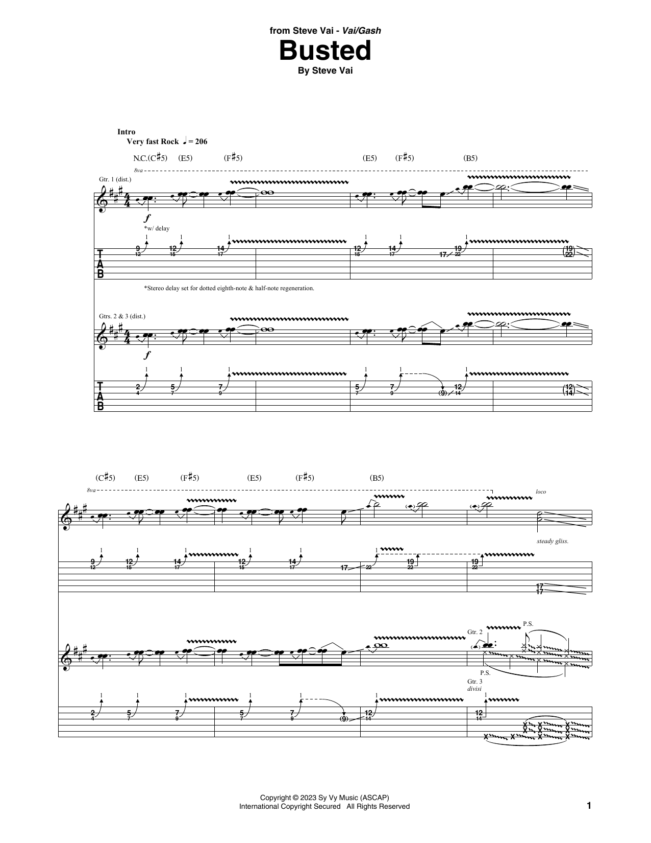 Download or print Steve Vai Busted sheet music, chords and digital score arranged for Guitar Tab. This Rock score includes 14 page(s).