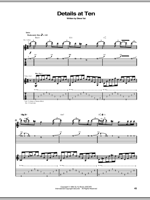 Download or print Steve Vai Details At Ten sheet music, chords and digital score arranged for Guitar Tab. This Pop score includes 12 page(s).