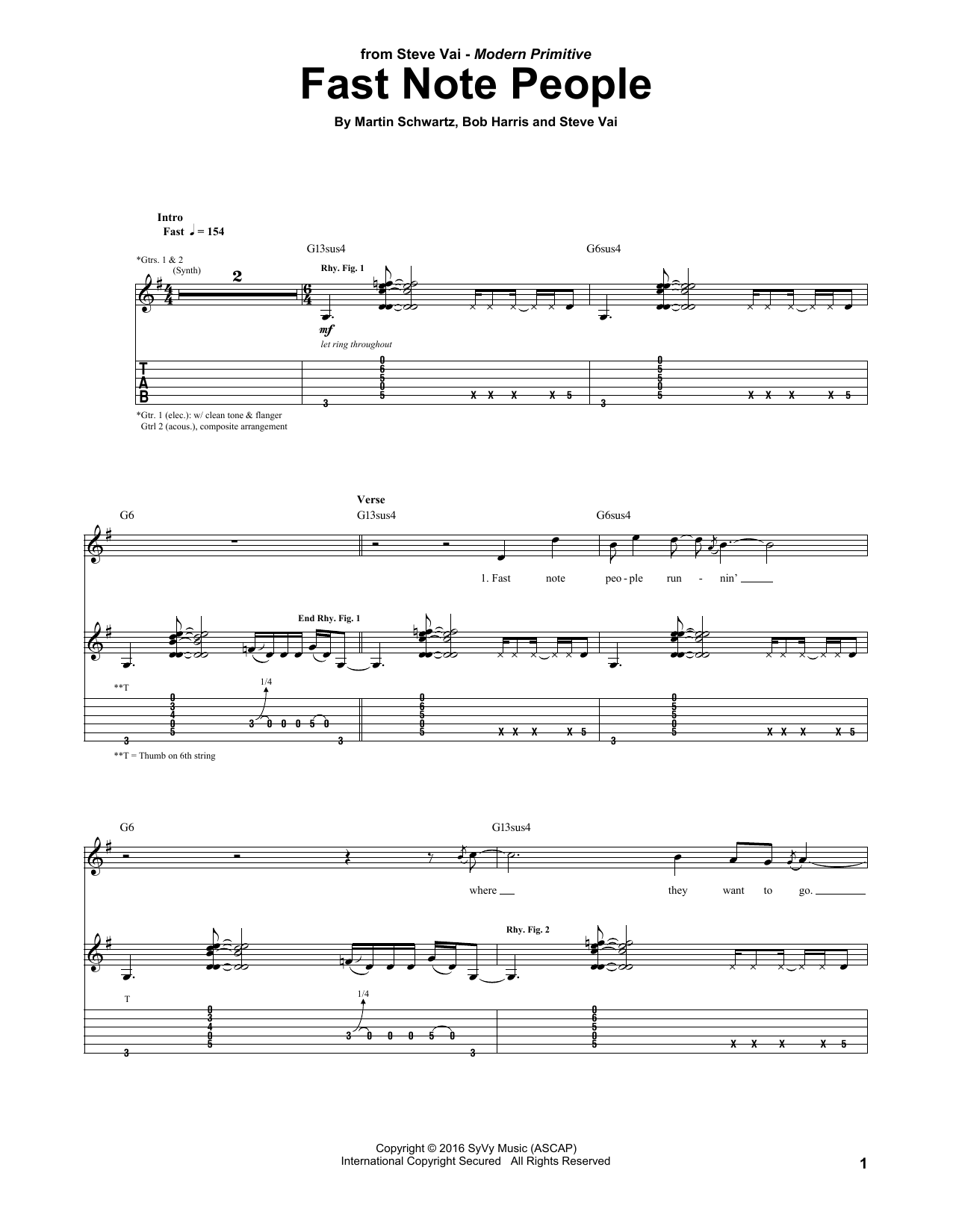 Download or print Steve Vai Fast Note People sheet music, chords and digital score arranged for Guitar Tab. This Pop score includes 23 page(s).