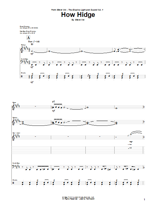 Download or print Steve Vai How Hidge sheet music, chords and digital score arranged for Guitar Tab. This Metal score includes 5 page(s).