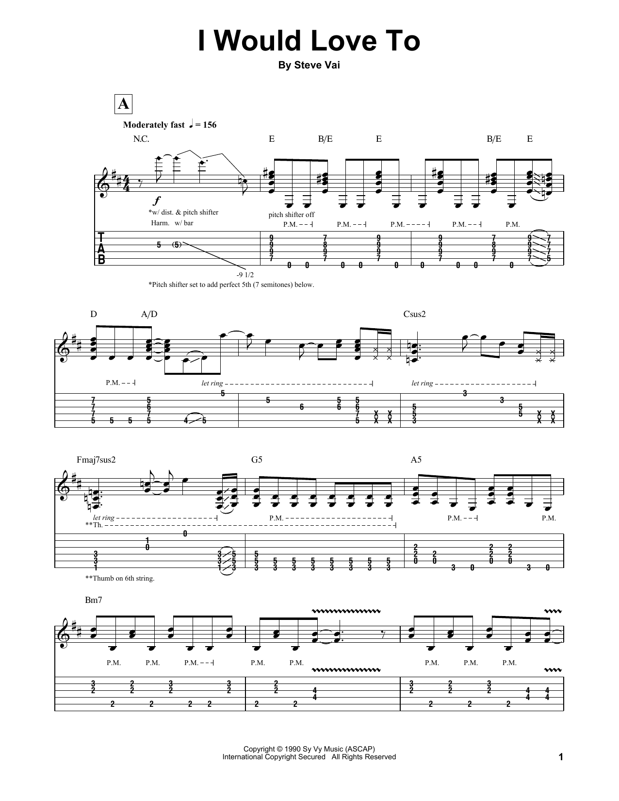 Download or print Steve Vai I Would Love To sheet music, chords and digital score arranged for Guitar Tab (Single Guitar). This Pop score includes 9 page(s).