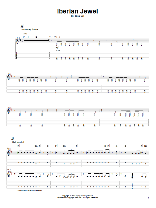 Download or print Steve Vai Iberian Jewel sheet music, chords and digital score arranged for Guitar Tab. This Metal score includes 15 page(s).