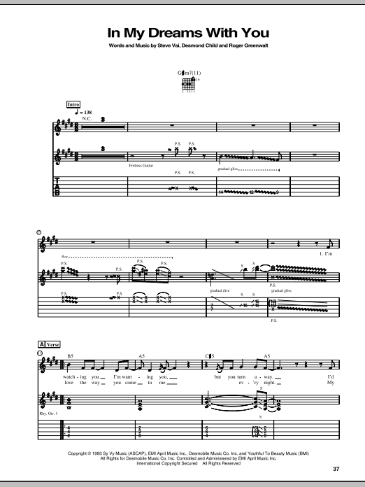 Download or print Steve Vai In My Dreams With You sheet music, chords and digital score arranged for Guitar Tab. This Metal score includes 8 page(s).