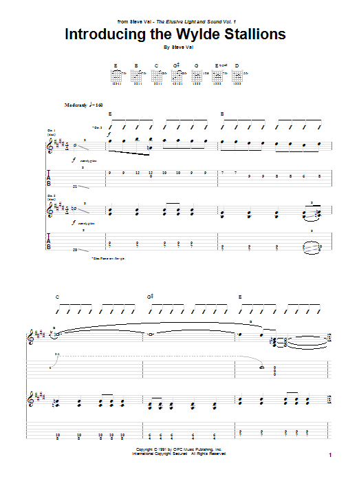 Download or print Steve Vai Introducing The Wylde Stallions sheet music, chords and digital score arranged for Guitar Tab. This Film/TV score includes 6 page(s).