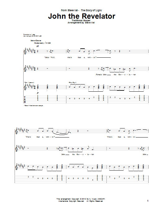 Download or print Steve Vai John The Revelator sheet music, chords and digital score arranged for Guitar Tab. This Pop score includes 12 page(s).