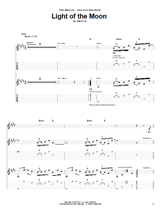 Download or print Steve Vai Light Of The Moon sheet music, chords and digital score arranged for Guitar Tab. This Metal score includes 9 page(s).