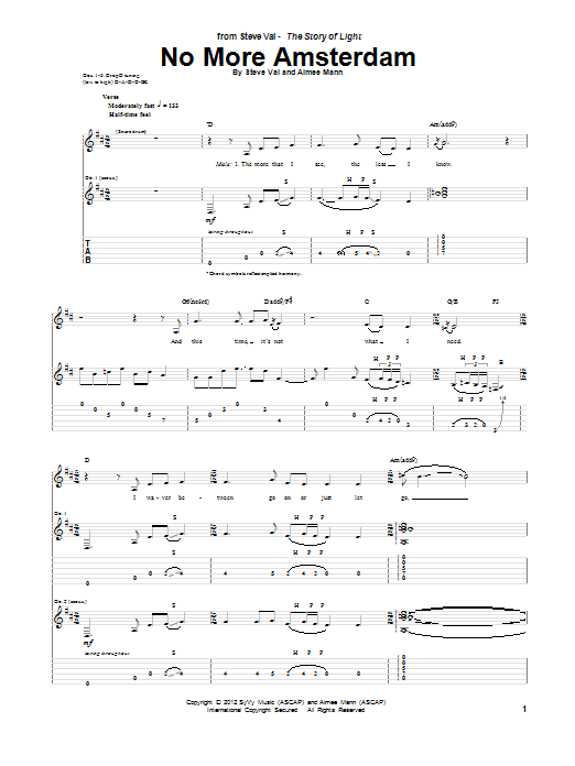 Download or print Steve Vai No More Amsterdam sheet music, chords and digital score arranged for Guitar Tab. This Pop score includes 17 page(s).