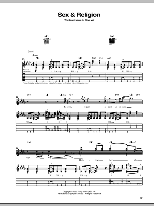 Download or print Steve Vai Sex & Religion sheet music, chords and digital score arranged for Guitar Tab. This Metal score includes 13 page(s).