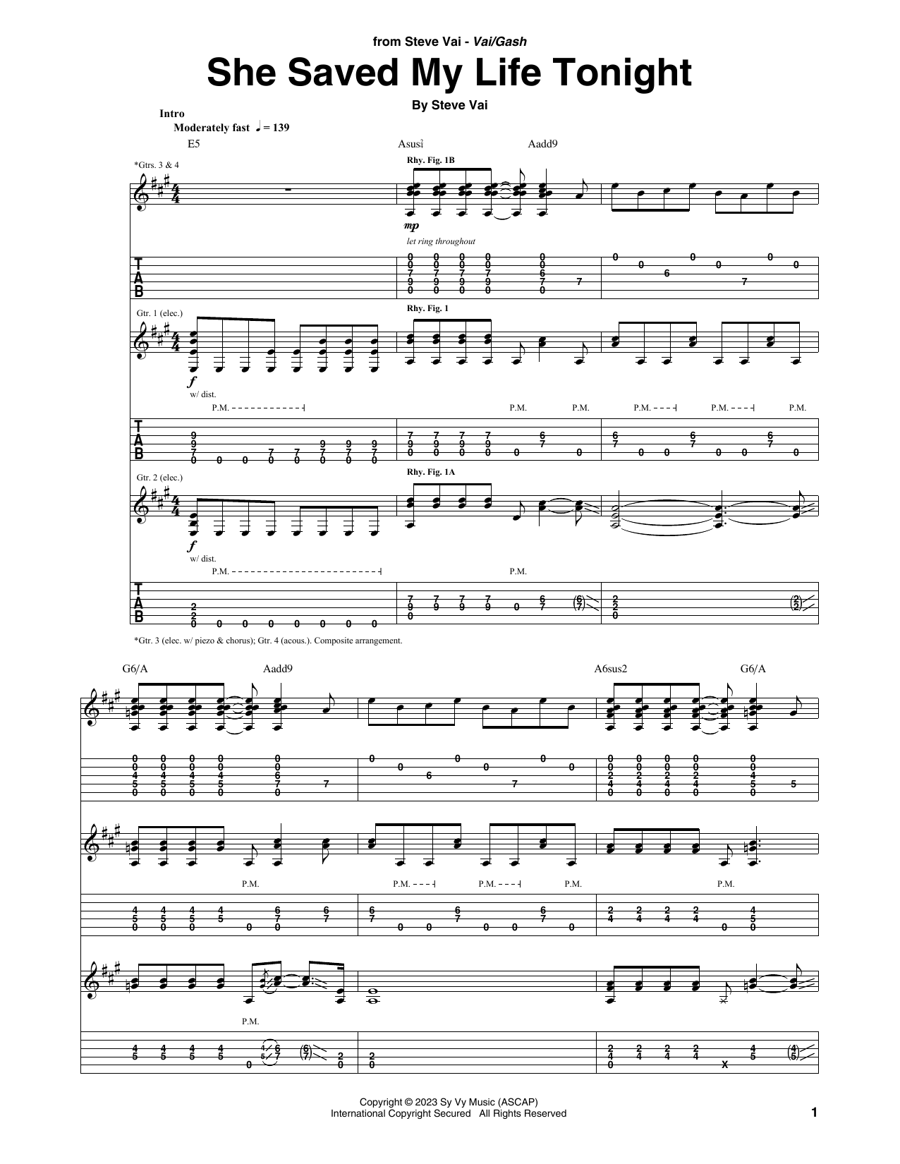 Download or print Steve Vai She Saved My Life Tonight sheet music, chords and digital score arranged for Guitar Tab. This Rock score includes 12 page(s).