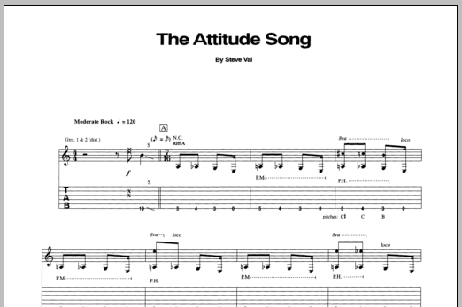 Download or print Steve Vai The Attitude Song sheet music, chords and digital score arranged for Guitar Tab. This Rock score includes 20 page(s).