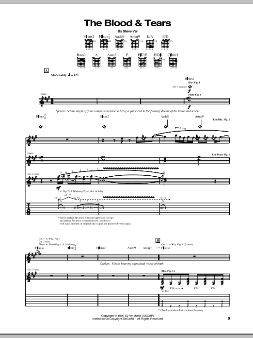 Download or print Steve Vai The Blood & Tears sheet music, chords and digital score arranged for Guitar Tab. This Metal score includes 13 page(s).
