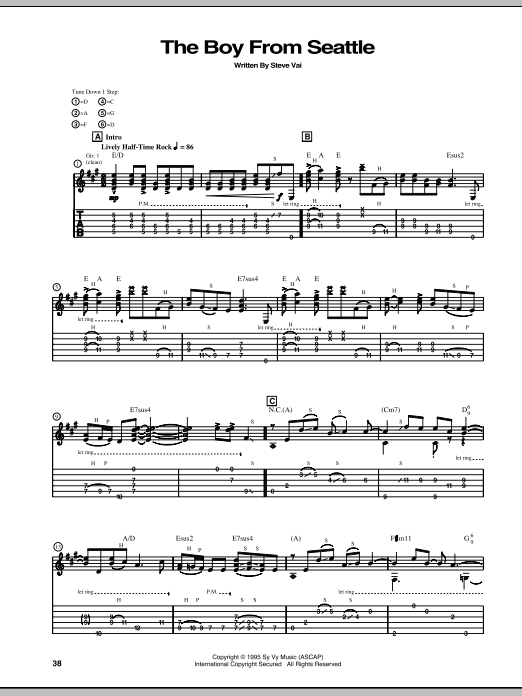 Download or print Steve Vai The Boy From Seattle sheet music, chords and digital score arranged for Guitar Tab. This Metal score includes 10 page(s).