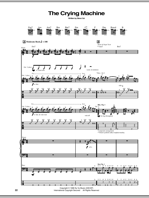Download or print Steve Vai The Crying Machine sheet music, chords and digital score arranged for Guitar Tab (Single Guitar). This Pop score includes 13 page(s).