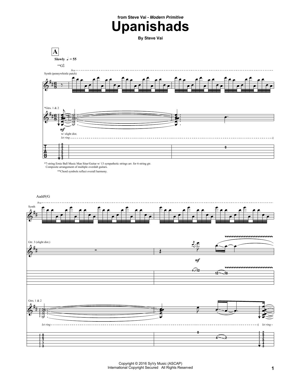Download or print Steve Vai Upanishads sheet music, chords and digital score arranged for Guitar Tab. This Pop score includes 31 page(s).