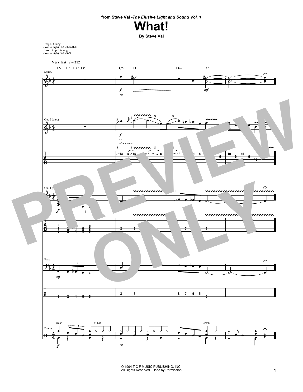 Download or print Steve Vai What! sheet music, chords and digital score arranged for Guitar Tab. This Rock score includes 1 page(s).