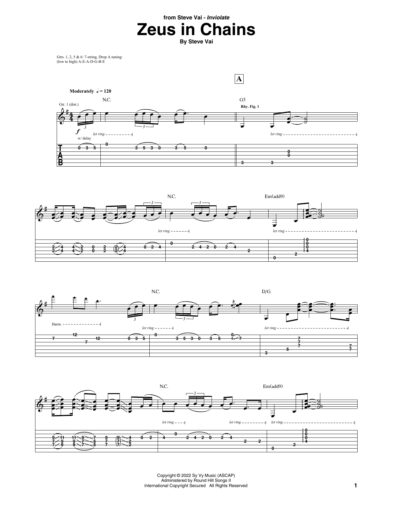 Download or print Steve Vai Zeus In Chains sheet music, chords and digital score arranged for Guitar Tab. This Rock score includes 15 page(s).