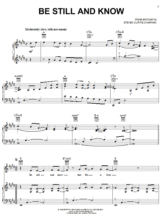 Download or print Steven Curtis Chapman Be Still And Know sheet music, chords and digital score arranged for Solo Guitar. This Christian score includes 5 page(s).