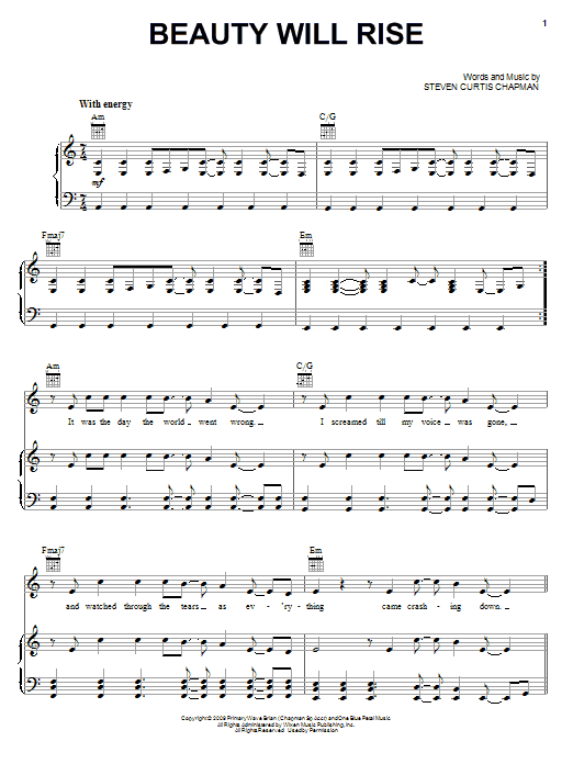 Download or print Steven Curtis Chapman Beauty Will Rise sheet music, chords and digital score arranged for Piano, Vocal & Guitar Chords (Right-Hand Melody). This Christian score includes 10 page(s).