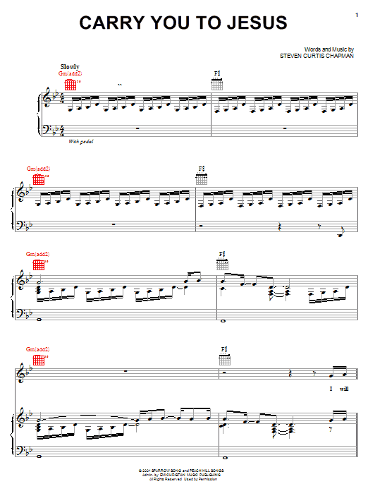 Download or print Steven Curtis Chapman Carry You To Jesus sheet music, chords and digital score arranged for Piano, Vocal & Guitar Chords (Right-Hand Melody). This Christian score includes 9 page(s).