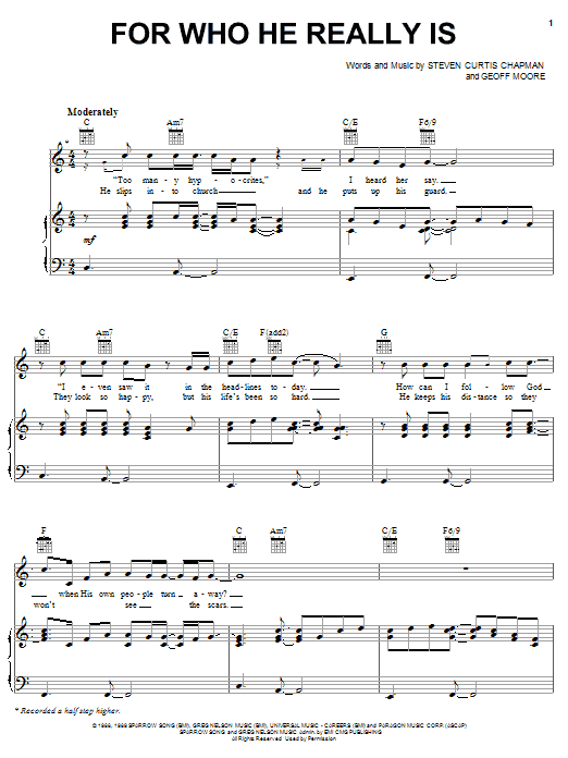 Download or print Steven Curtis Chapman For Who He Really Is sheet music, chords and digital score arranged for Piano, Vocal & Guitar Chords (Right-Hand Melody). This Christian score includes 5 page(s).