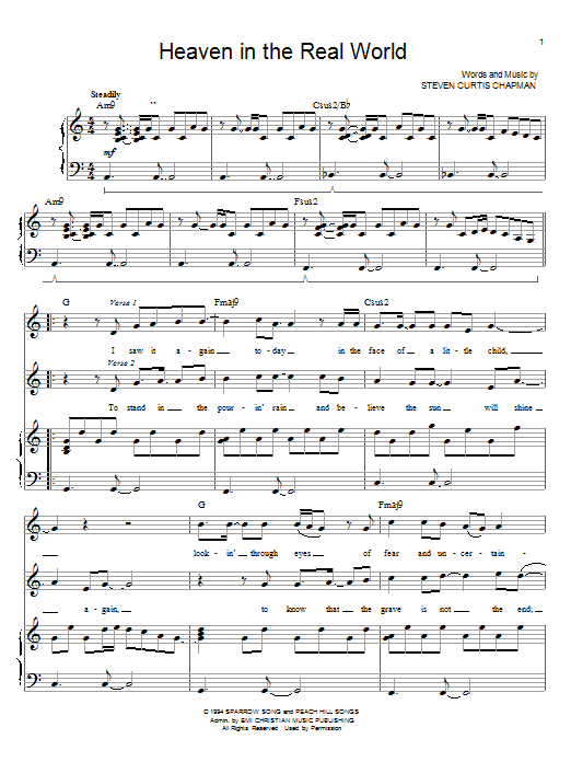 Download or print Steven Curtis Chapman Heaven In The Real World sheet music, chords and digital score arranged for Piano & Vocal. This Christian score includes 7 page(s).