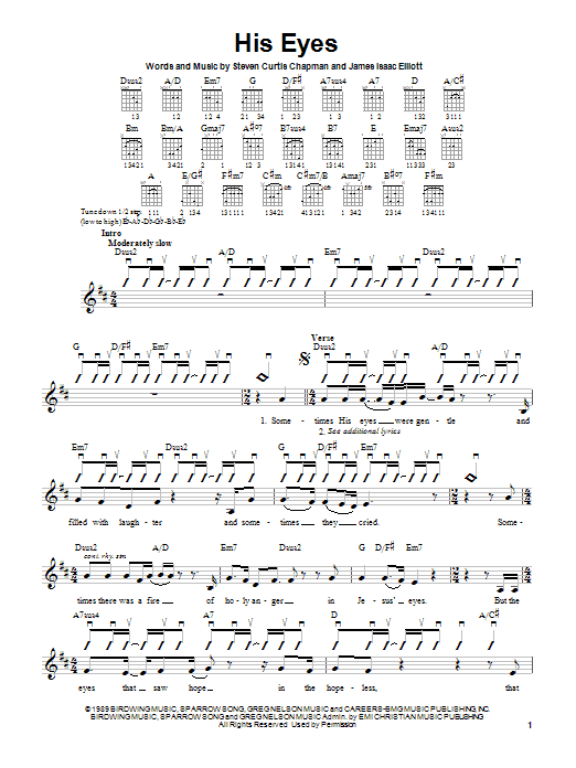 Download or print Steven Curtis Chapman His Eyes sheet music, chords and digital score arranged for Piano, Vocal & Guitar Chords (Right-Hand Melody). This Christian score includes 5 page(s).