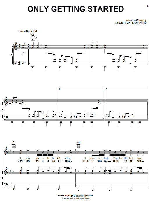 Download or print Steven Curtis Chapman Only Getting Started sheet music, chords and digital score arranged for Piano, Vocal & Guitar Chords (Right-Hand Melody). This Christian score includes 8 page(s).