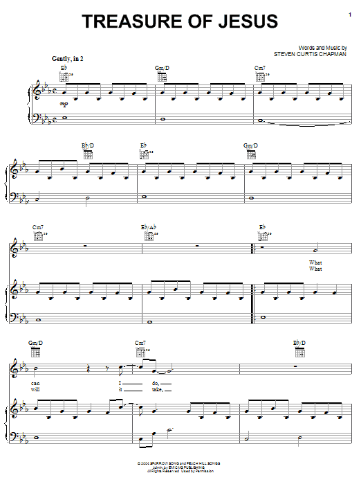 Download or print Steven Curtis Chapman Treasure Of Jesus sheet music, chords and digital score arranged for Piano, Vocal & Guitar Chords (Right-Hand Melody). This Christian score includes 5 page(s).