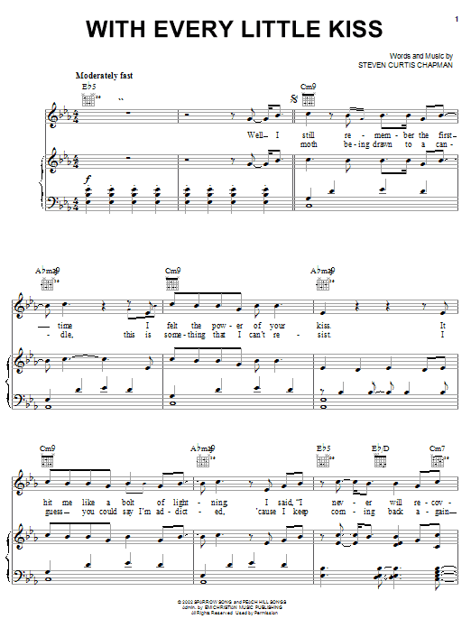 Download or print Steven Curtis Chapman With Every Little Kiss sheet music, chords and digital score arranged for Piano, Vocal & Guitar Chords (Right-Hand Melody). This Christian score includes 7 page(s).