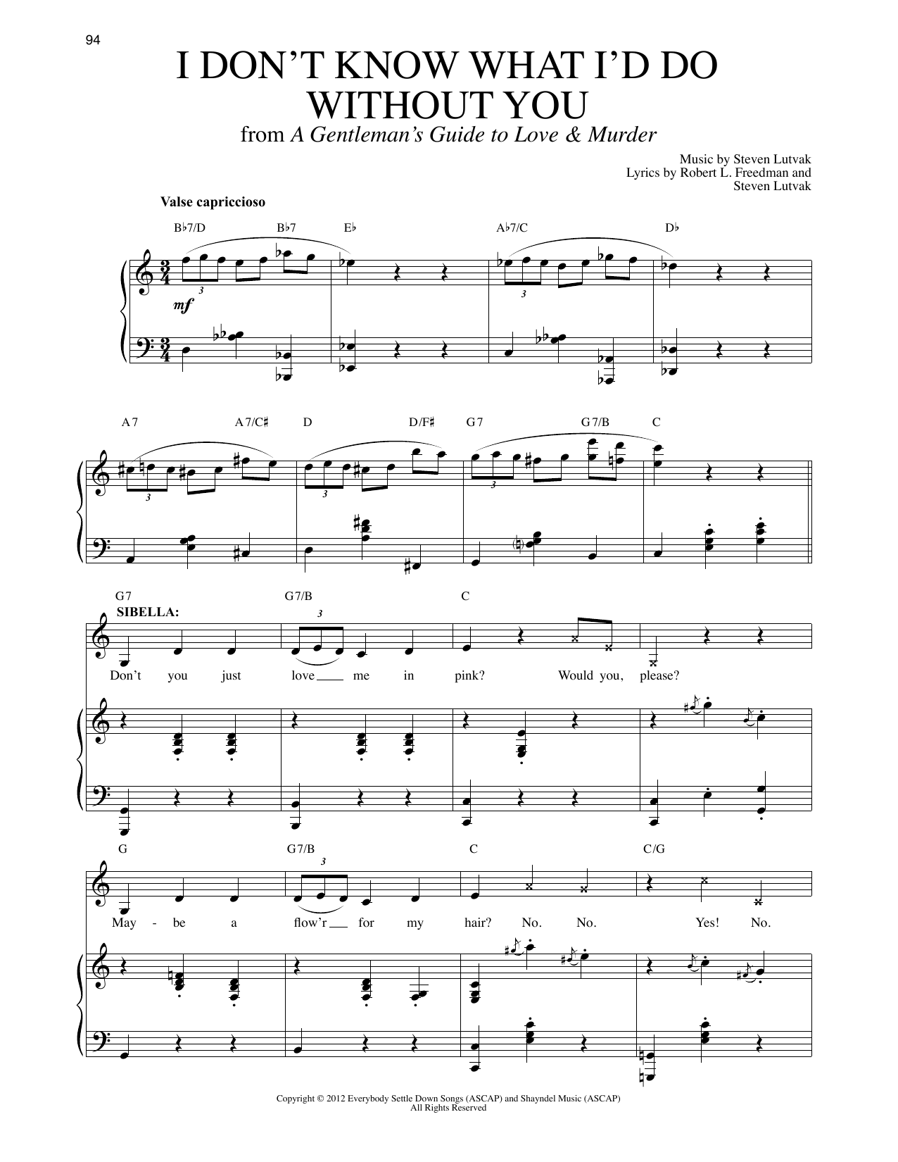 Download or print Steven Lutvak I Don't Know What I'd Do Without You sheet music, chords and digital score arranged for Piano & Vocal. This Musical/Show score includes 6 page(s).