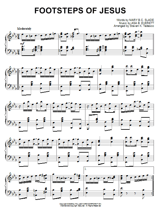 Download or print Steven Tedesco Footsteps Of Jesus [Ragtime version] sheet music, chords and digital score arranged for Piano Solo. This Christian score includes 2 page(s).