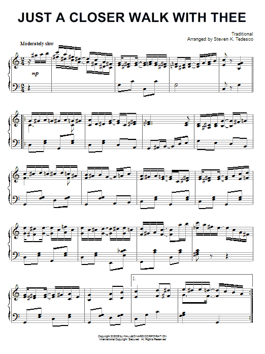 Download or print Steven Tedesco Just A Closer Walk With Thee [Ragtime version] sheet music, chords and digital score arranged for Piano Solo. This Christian score includes 2 page(s).