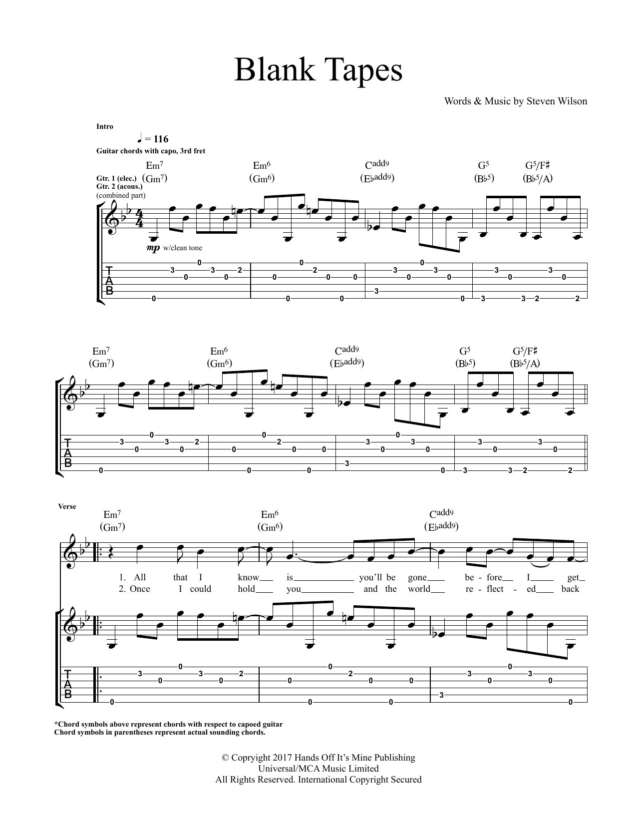 Download or print Steven Wilson Blank Tapes sheet music, chords and digital score arranged for Guitar Tab. This Rock score includes 5 page(s).