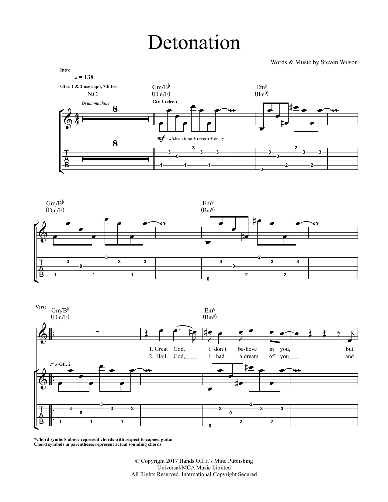 Download or print Steven Wilson Detonation sheet music, chords and digital score arranged for Guitar Tab. This Rock score includes 16 page(s).