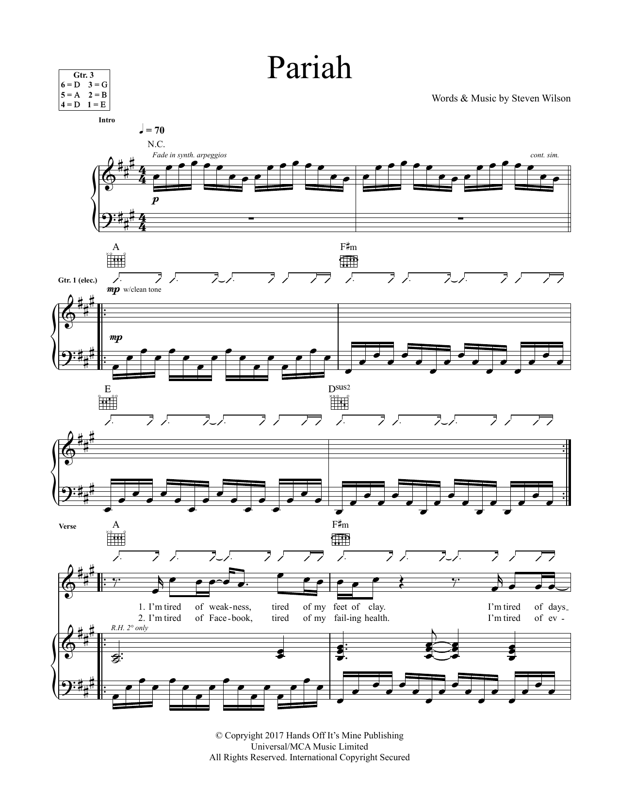 Download or print Steven Wilson Pariah sheet music, chords and digital score arranged for Guitar Tab. This Pop score includes 7 page(s).