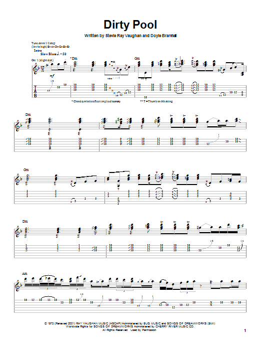 Download or print Stevie Ray Vaughan Dirty Pool sheet music, chords and digital score arranged for Guitar Tab. This Blues score includes 13 page(s).