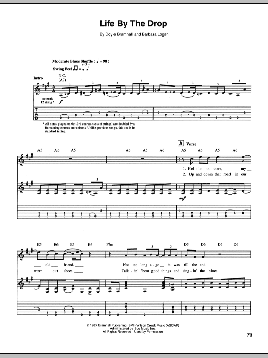 Download or print Stevie Ray Vaughan Life By The Drop sheet music, chords and digital score arranged for Guitar Tab. This Blues score includes 4 page(s).