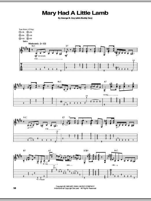 Download or print Stevie Ray Vaughan Mary Had A Little Lamb sheet music, chords and digital score arranged for Guitar Chords/Lyrics. This Blues score includes 2 page(s).