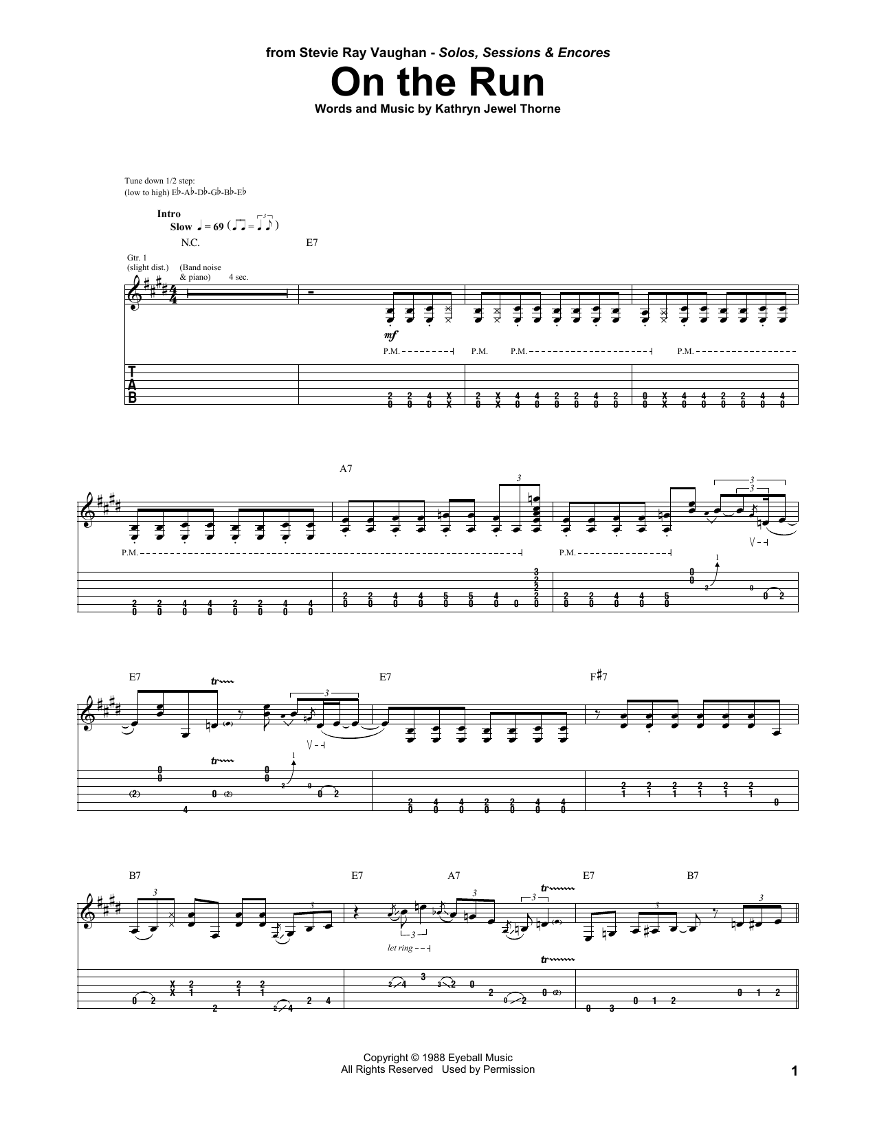 Download or print Stevie Ray Vaughan On The Run sheet music, chords and digital score arranged for Guitar Tab. This Pop score includes 10 page(s).
