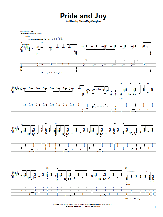 Download or print Stevie Ray Vaughan Pride And Joy (acoustic version) sheet music, chords and digital score arranged for Guitar Tab. This Blues score includes 6 page(s).