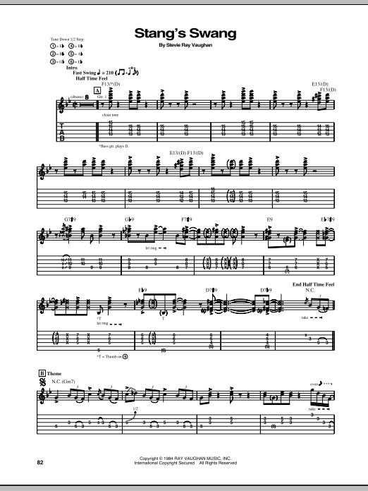 Download or print Stevie Ray Vaughan Stang's Swang sheet music, chords and digital score arranged for Guitar Tab. This Blues score includes 5 page(s).