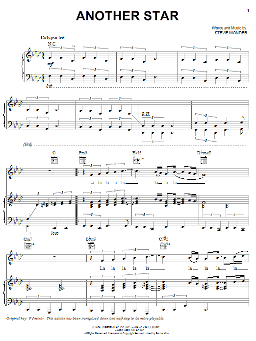 Download or print Stevie Wonder Another Star sheet music, chords and digital score arranged for Real Book – Melody & Chords – C Instruments. This Jazz score includes 2 page(s).