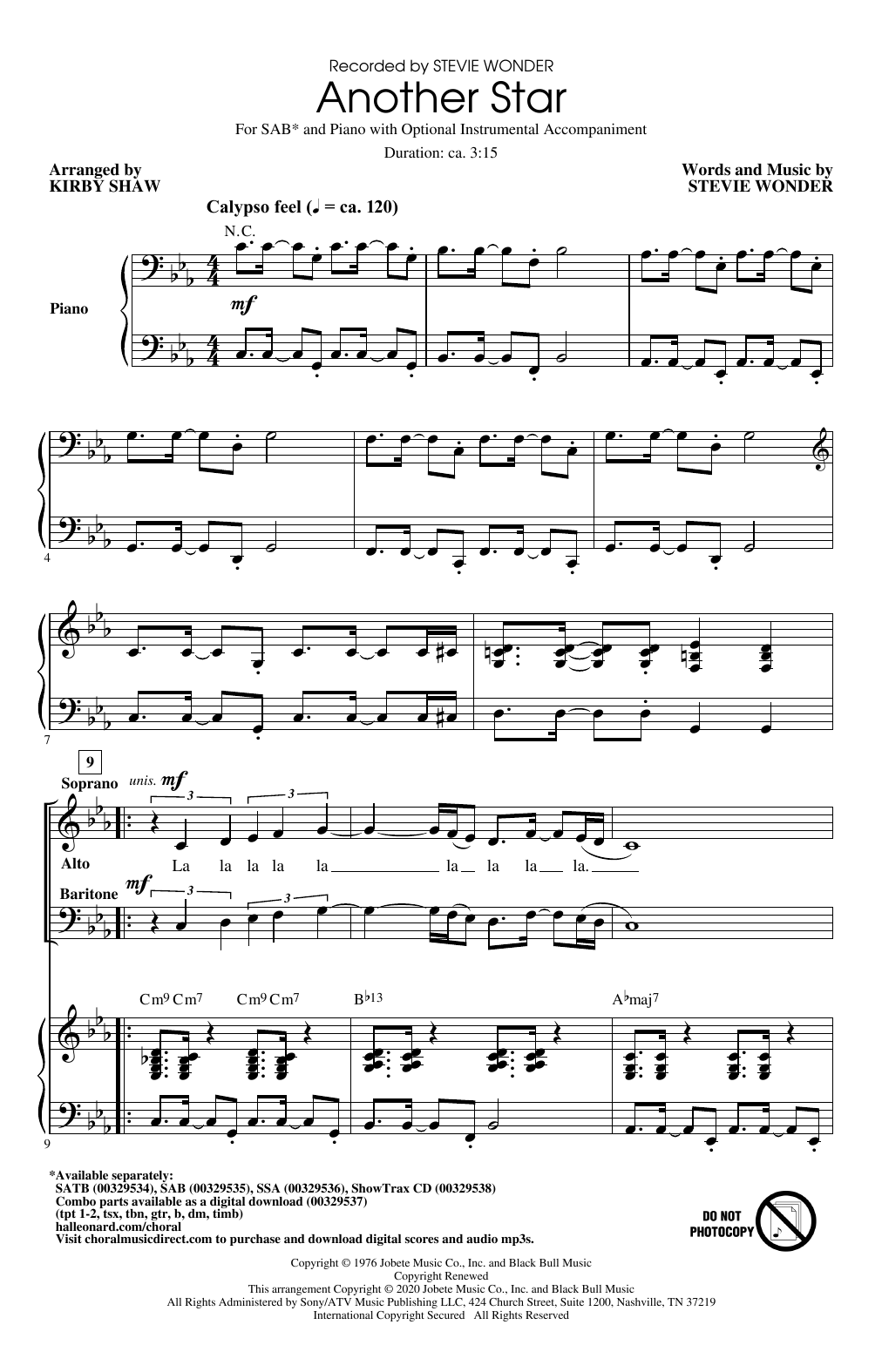 Download or print Stevie Wonder Another Star (arr. Kirby Shaw) sheet music, chords and digital score arranged for SSA Choir. This Jazz score includes 11 page(s).