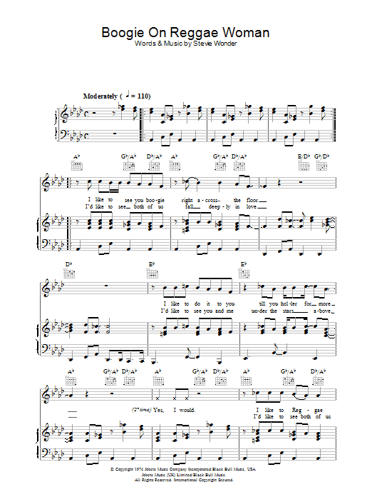 Download or print Stevie Wonder Boogie On Reggae Woman sheet music, chords and digital score arranged for Keyboard Transcription. This Funk score includes 11 page(s).